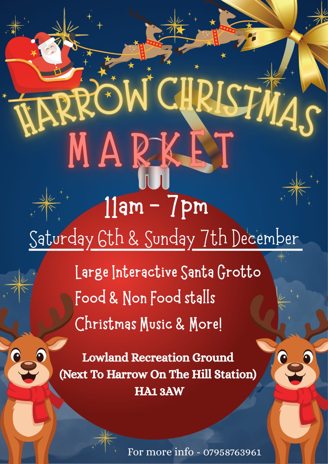 Christmas Market on Lowlands Road (behind Harrow on the Hill Station). Call 07958 763961 if you would like to have a stall.