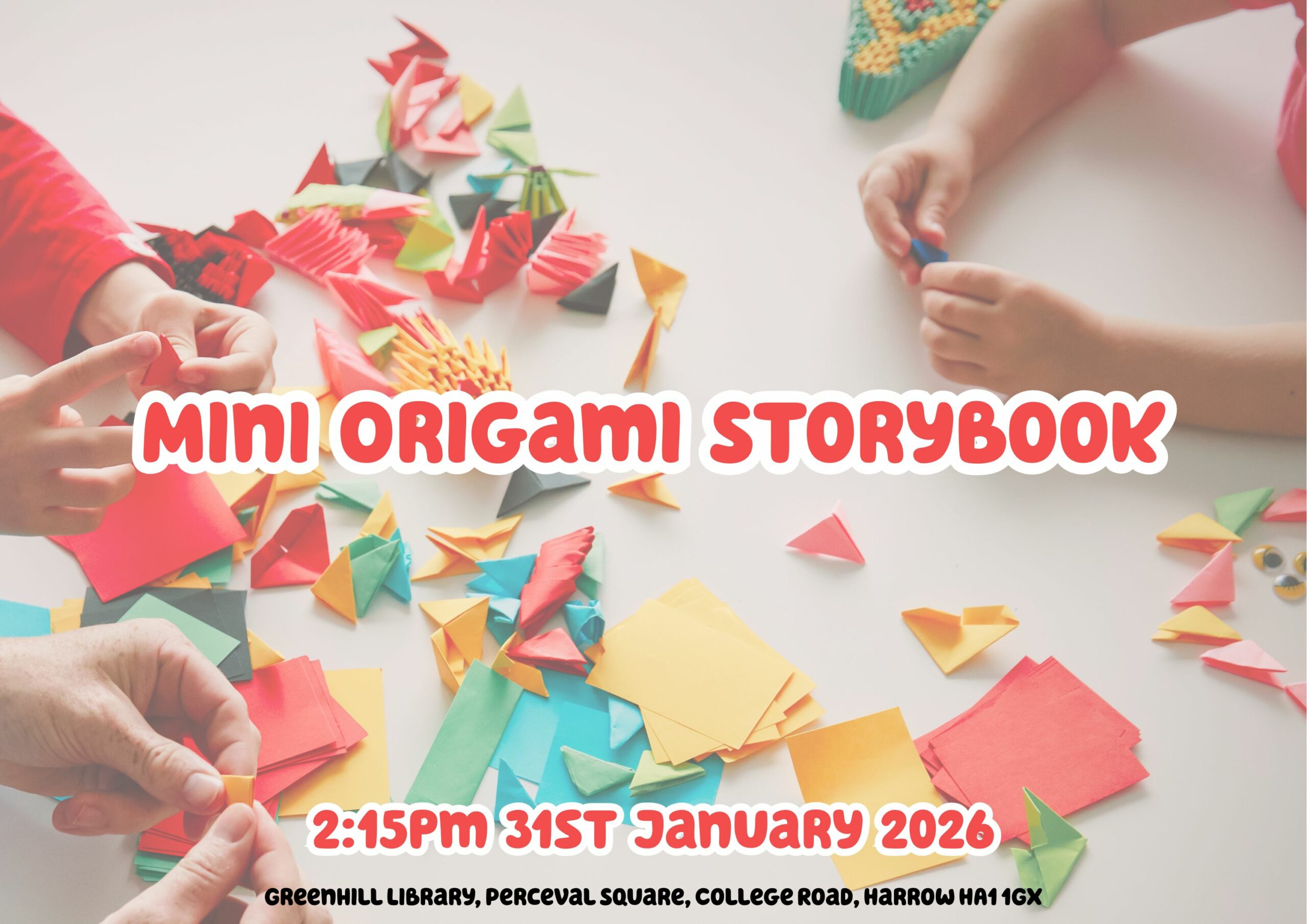 Booking required: 📞020 3714 7731 or email greenhill.library@harrowlibraries.org.uk