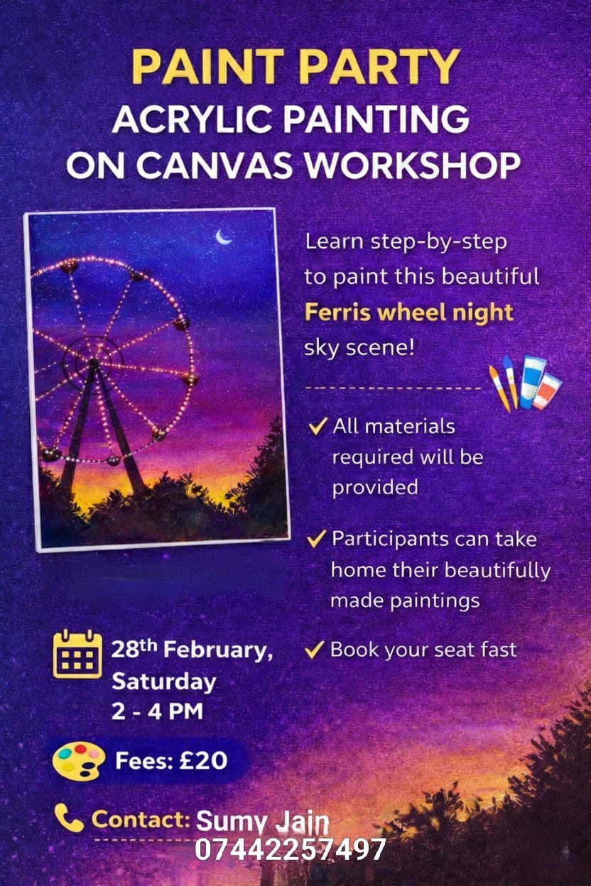 Join our Acrylic Paint Party and take home a beautiful canvas you’ll be proud of, in just one session.  Perfect for beginners and art lovers alike!