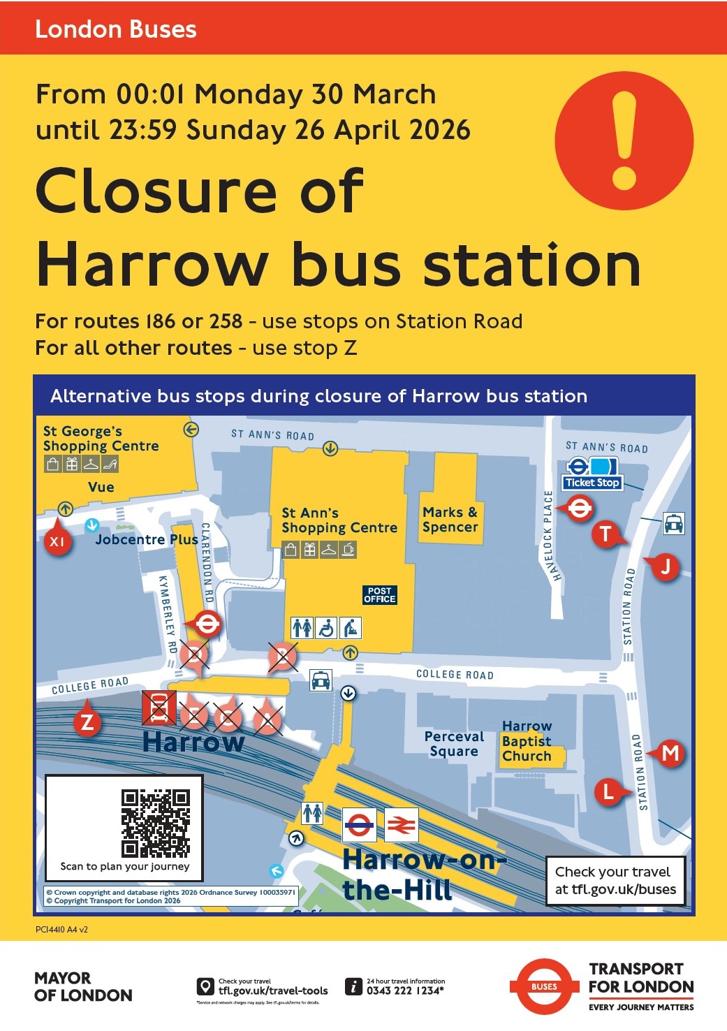TfL will be undertaking works to improve safety and accessibility at Harrow bus station, which will start on Monday 30th March 2026 and last for about four weeks. This means temporary changes will be made to where some bus routes and rail replacement bus services (that serve Harrow-on-the-Hill station) stop.